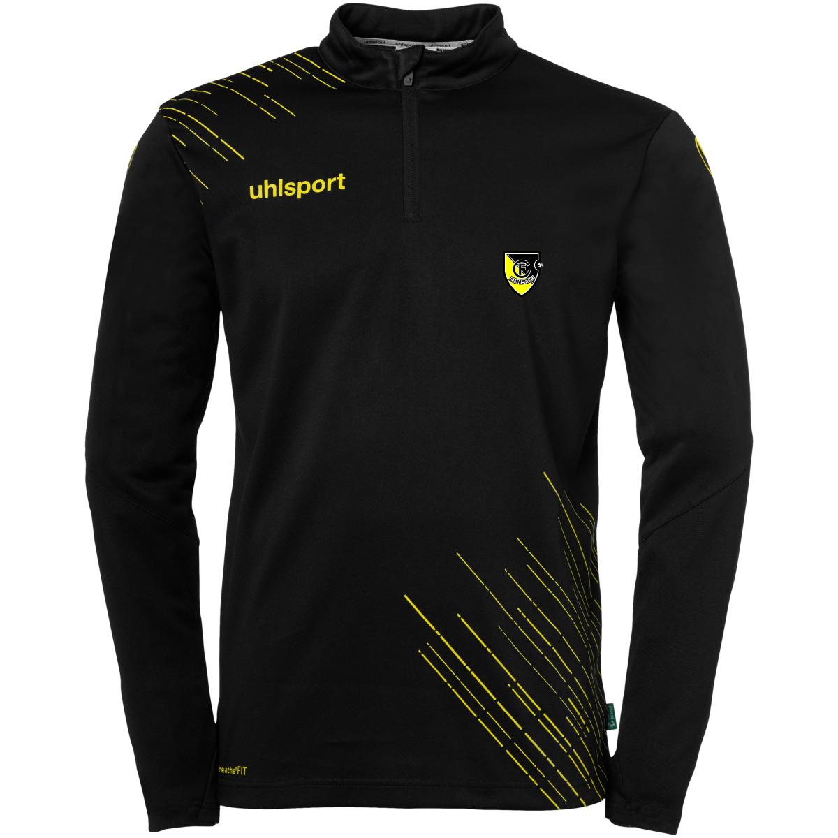 gedruckter uhlsport-Schriftzug auf linkem Bein